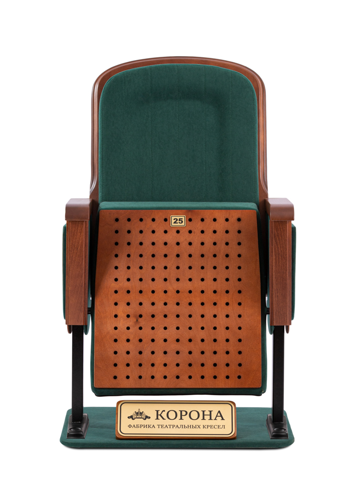 Сиденье кресла «Презент» выполнено с использованием плотного пенополиуретана, который сохраняет форму и обеспечивает равномерное распределение нагрузки. Оно оснащено простым и надежным гравитационным механизмом, благодаря которому после того, как зритель покидает кресло, сиденье плавно и бесшумно возвращается в исходное положение. Это решение идеально подходит для залов, где особенно важна акустическая чистота и отсутствие лишнего шума. Перфорированная деревянная заглушка на нижней части сиденья не только усиливает эстетическую выразительность модели, но и придаёт конструкции ощущение легкости и технологичности. Такое сочетание визуальной привлекательности и практичности делает кресло долговечным и удобным при эксплуатации в условиях высокой нагрузки.
