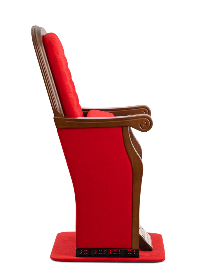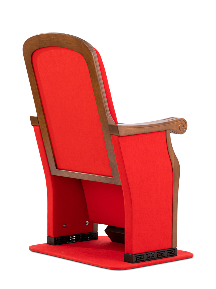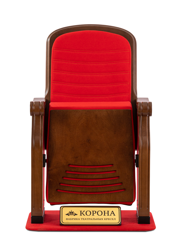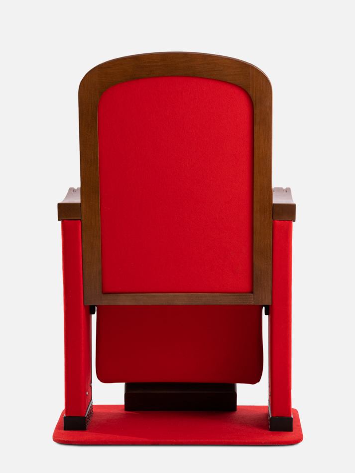 Мягкая часть спинки кресла выполнена из плотного пенополиуретана, применяемого в автомобилестроении, что гарантирует долговечность и сохранение формы даже при интенсивной эксплуатации. Эргономичный изгиб спинки повторяет естественные контуры позвоночника, поддерживая правильное положение тела и обеспечивая комфорт во время продолжительных мероприятий. Обрамление из цельной деревянной обечайки с декоративным рисунком в трёх плоскостях превращает спинку в настоящее произведение мебельного искусства. Эта деталь придаёт креслу «Флоренция» особую выразительность и делает его узнаваемым. Сиденье снабжено надёжным гравитационным механизмом складывания, благодаря которому оно плавно и бесшумно возвращается в исходное положение, поддерживая порядок в зале и создавая атмосферу гармонии.