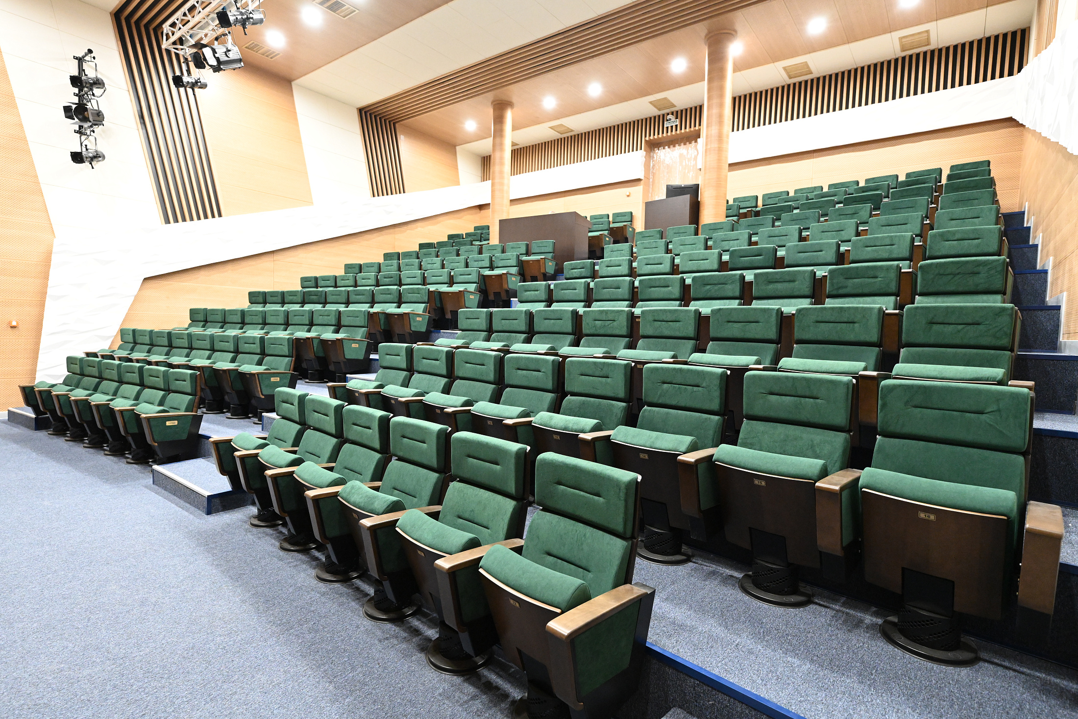 Конструкция кресла предусматривает установку интегрированных столиков с поворотным механизмом, систем индивидуального освещения, розеток 220В или USB-портов, а также держателей для микрофонов или планшетов. Возможна также организация кабель-каналов для скрытого подключения техники, что особенно важно при использовании в правительственных и пресс-центрах. Кресло крепится к полу скрытыми болтами, возможна установка на поворотных платформах или выдвижных рядах.