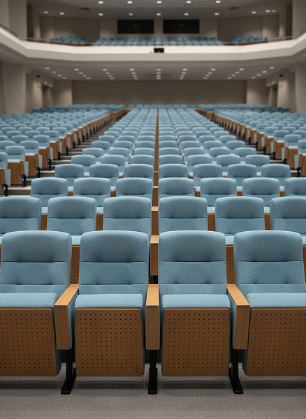 Кресло «Утяжка» представляет собой комфортное и эргономичное посадочное решение, разработанное для оснащения зрительных и конференц-залов, лекционных аудиторий, а также других пространств, где важны долговечность, эстетика и высокая степень удобства. Конструкция модели отличается лаконичным силуэтом и визуальной лёгкостью, что позволяет интегрировать её в интерьеры различной стилистики — от минималистичных до классических залов с элементами дерева. Особое внимание в проектировании было уделено геометрии посадки: спинка и сиденье оформлены в стиле мягкой сегментной утяжки, обеспечивающей равномерное распределение нагрузки по поверхности, улучшенную циркуляцию воздуха и дополнительную поддержку поясничного отдела.